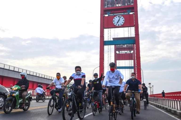 Dimana, gowes tersebut diawali dari Griya Agung Palembang hingga menyusuri jalanan kota Palembang hingga berakhir di wisata Sungai Sekanak Lambidaro.